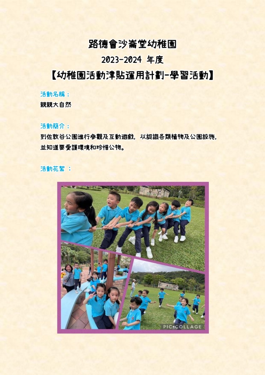 幼稚園活動津貼運用計劃